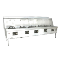 MasterRange® Wok Range, gas, (5) cast iron brick lined chamber, (5) swing faucets mounted on 25" backsplash, knee "L" lever gas handle, stainless steel deck & sides, ETL NSF