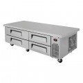 Super Deluxe Extended Top Chef Base Refrigerator, 78"W x 32"D x 20-1/4"H, 12.66 cu. ft., side mounted self-contained refrigeration system, self-cleaning condenser device, (4) durable drawers with recessed handles, accommodates pans up to 6" deep, capacity: (2) full size pans per drawer (NOT included), 16 ga. stainless steel one-piece reinforced insulated top, stainless steel front & sides, digital temperature display, R290 Hydrocarbon refrigerant, 1/4+ HP, 115v/60/1-ph, 5.6 amps, NEMA 5-15P, cETLus, ETL-Sanitation