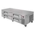 Super Deluxe Chef Base Refrigerator, 83-5/8"W x 32"D x 20-1/4"H, 16.04 cu. ft., side mounted self-contained refrigeration system, self-cleaning condenser device, (4) durable drawers with recessed handles, accommodates pans up to 6" deep, capacity: (3) full size pans per drawer (left side top & bottom) & (2) full size pans per drawer (right side top & bottom) (NOT included), 16 ga. stainless steel one-piece reinforced insulated top, stainless steel front & sides, digital temperature display, R290 Hydrocarbon refrigerant, 1/3 HP, 115v/60/1-ph, 6.2 amps, NEMA 5-15P, cETLus, ETL-Sanitation