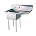 Sink, 1-compartment, with 18" right-hand drainboard, 18" front-to-back x 18" wide sink compartment, 11" deep bowl, 11"H backsplash, 18/304 stainless steel bowl, galvanized gussets & tubular legs with adjustable ABS feet, NSF
