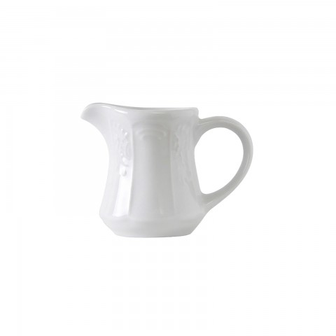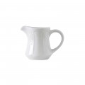 Creamer, 3-1/2 oz., 3-7/8" x 2-7/8"H, embossed, with handle, microwave & dishwasher safe, oven proof, fully vitrified, lead-free, Chicago, Porcelain White