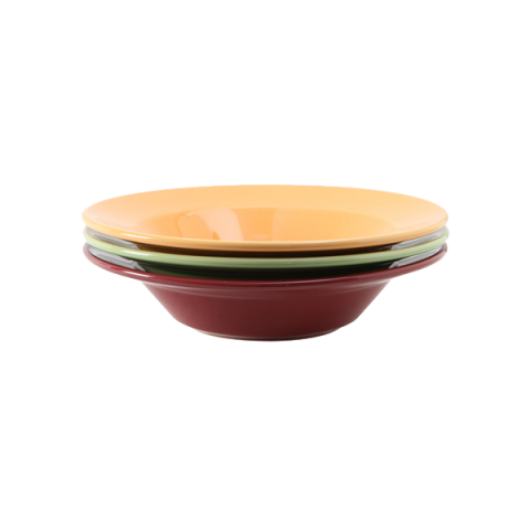 Pasta Bowl, 24 oz., 10-5/8" dia. x 2-1/2"H, tall, round, microwave & dishwasher safe, oven proof, fully vitrified, lead-free, ceramic, DuraTux®©, assorted colors: Butterscotch Cranberry & Pistachio