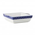 Casserole Dish, 3-1/4 qt., 12"L x 10"W x 3"H (10"L without handle), square, without lid, embossed, microwave & dishwasher safe, oven proof, fully vitrified, lead-free, DisplayTux®©, Porcelain White with Cobalt Band
