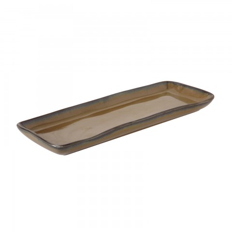 Tray, 13-3/4" x 5" x 1-1/4"H, rectangular, microwave & dishwasher safe, oven proof, fully vitrified, lead-free, ceramic, TuxTrendz®©, Artisan, Mojave