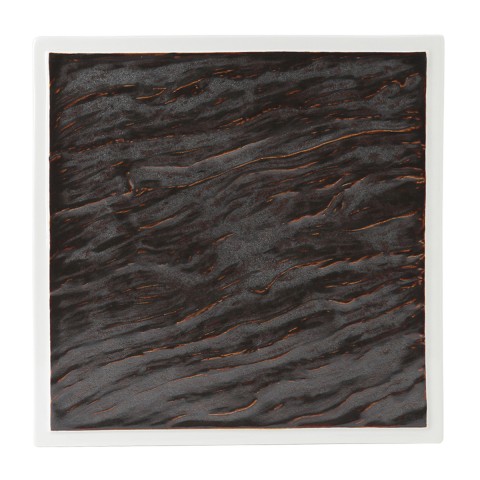 Plate, 10" x 10", square, narrow rim, textured, microwave & dishwasher safe, oven proof, fully vitrified, lead-free, Kona, Lava/Porcelain White