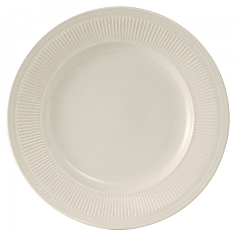 Plate, 11" dia., round, wide rim, embossed, microwave & dishwasher safe, oven proof, fully vitrified, lead-free, ceramic, Hampshire, American White/Eggshell