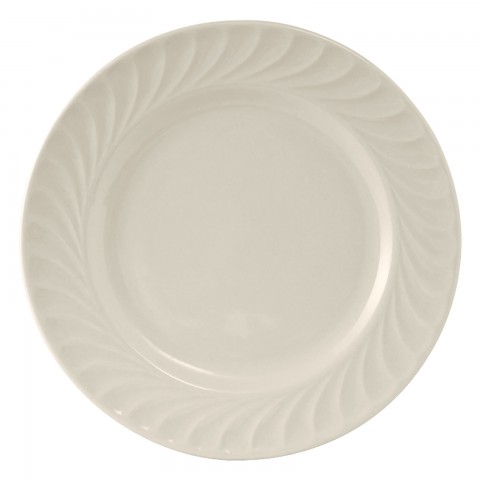 Plate, 10-1/2" dia., round, wide rim, embossed, microwave & dishwasher safe, oven proof, fully vitrified, lead-free, ceramic, Meridian, American White/Eggshell