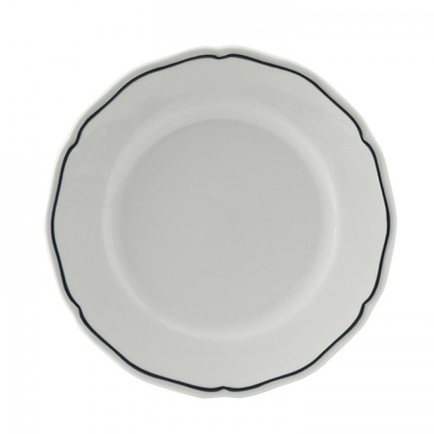 Plate, 6-1/2" dia., round, scalloped edge, microwave & dishwasher safe, oven proof, fully vitrified, lead-free, porcelain, TuxTrendz®©, Charleston, Porcelain White with Blue Band