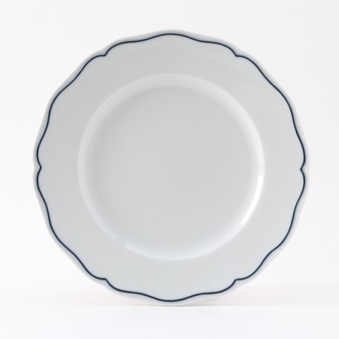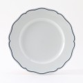 Plate, 9" dia., round, scalloped edge, microwave & dishwasher safe, oven proof, fully vitrified, lead-free, porcelain, TuxTrendz®©, Charleston, Porcelain White with Blue Band
