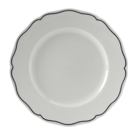 Plate, 10-3/4" dia., round, scalloped edge, microwave & dishwasher safe, oven proof, fully vitrified, lead-free, porcelain, TuxTrendz®©, Charleston, Porcelain White with Blue Band