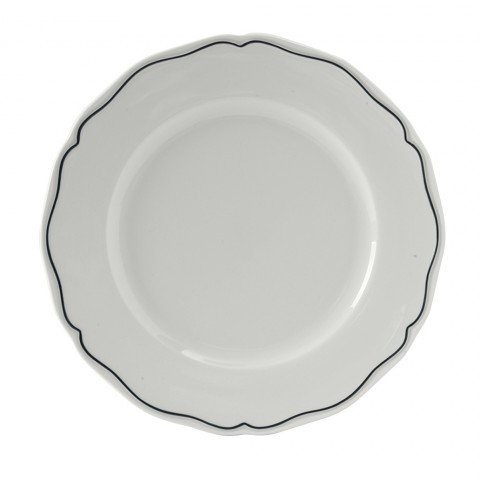 Plate, 12-1/4" dia., round, scalloped edge, microwave & dishwasher safe, oven proof, fully vitrified, lead-free, porcelain, TuxTrendz®©, Charleston, Porcelain White with Blue Band