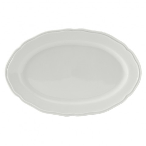 Platter, 12-1/2" x 8-7/8", oval, scalloped edge, microwave & dishwasher safe, oven proof, fully vitrified, lead-free, porcelain, TuxTrendz®©, Charleston, Porcelain White