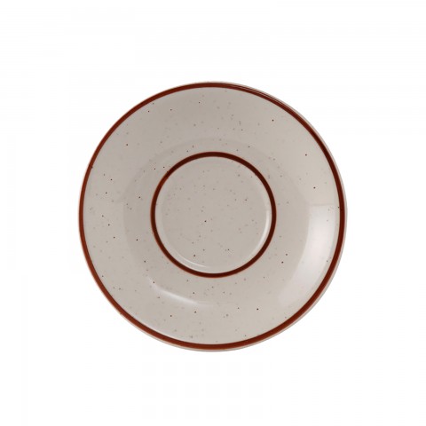Saucer, 6" dia., round, coupe, narrow rim, microwave & dishwasher safe, oven proof, fully vitrified, lead-free, ceramic, TuxCare®©, Healthcare, Bahamas, American White/Eggshell with Brown Speckle