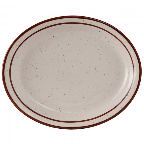 Platter, 11-1/2" x 9-1/8", oval, narrow rim, microwave & dishwasher safe, oven proof, fully vitrified, lead-free, ceramic, Bahamas, American White/Eggshell with Brown Speckle
