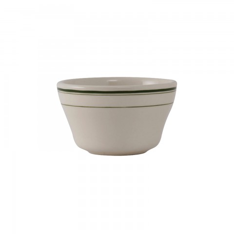 Bouillon, 8 oz., 4" dia. x 2-3/8" H, round, wide rim, rolled edge, microwave & dishwasher safe, oven proof, fully vitrified, lead-free, ceramic, Green Bay, American White/Eggshell with Green Band