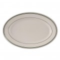 Platter, 10-1/2" x 7-3/8", oval, wide rim, rolled edge, microwave & dishwasher safe, oven proof, fully vitrified, lead-free, ceramic, Green Bay, American White/Eggshell with Green Band
