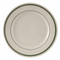 Plate, 10-1/2" dia., round, wide rim, rolled edge, microwave & dishwasher safe, oven proof, fully vitrified, lead-free, ceramic, Green Bay, American White/Eggshell with Green Band