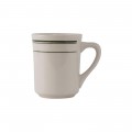 Tiara Mug, 8 oz., 3" dia. x 3-7/8"H, wide rim, rolled edge, microwave & dishwasher safe, oven proof, fully vitrified, lead-free, ceramic, Green Bay, American White/Eggshell with Green Band