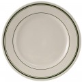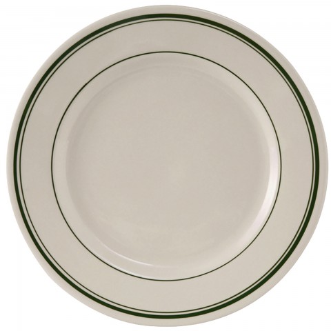 Plate, 12" dia., round, wide rim, rolled edge, microwave & dishwasher safe, oven proof, fully vitrified, lead-free, ceramic, Green Bay, American White/Eggshell with Green Band
