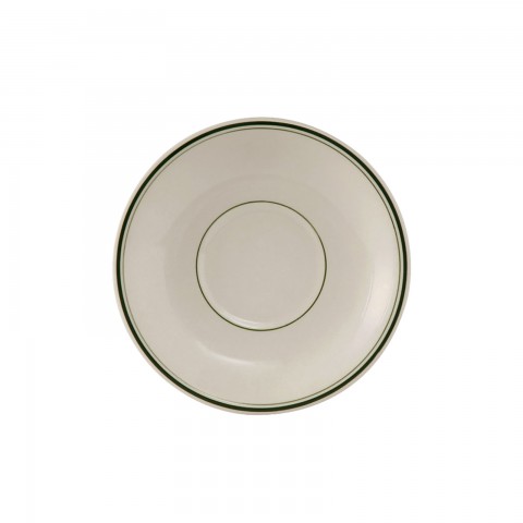 Demitasse Saucer, 5" dia., coupe, wide rim, rolled edge, microwave & dishwasher safe, oven proof, fully vitrified, lead-free, ceramic, Green Bay, American White/Eggshell with Green Band
