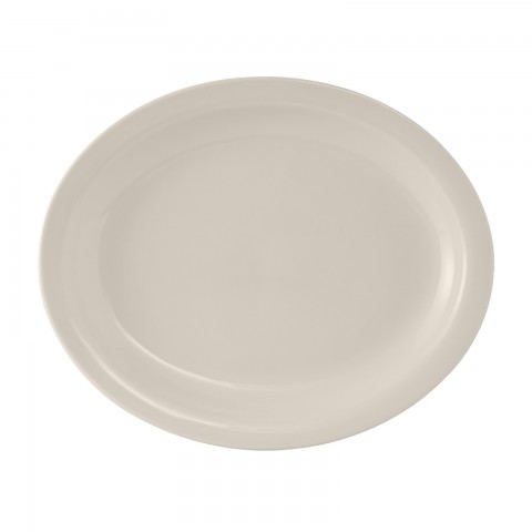 Platter, 9-1/2" x 7-1/2", oval, narrow rim, microwave & dishwasher safe, oven proof, fully vitrified, lead-free, ceramic, Nevada, American White/Eggshell