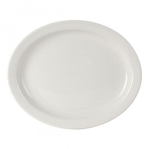 Platter, 13-1/2", oval, narrow rim, microwave & dishwasher safe, oven proof, fully vitrified, lead-free, ceramic, Nevada,Eggshell
