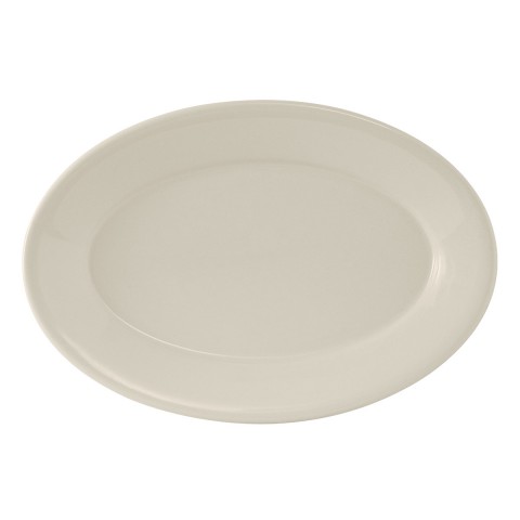 Platter, 15" x 10-3/8", oval, wide rim, rolled edge, microwave & dishwasher safe, oven proof, fully vitrified, lead-free, ceramic, Reno, American White/Eggshell