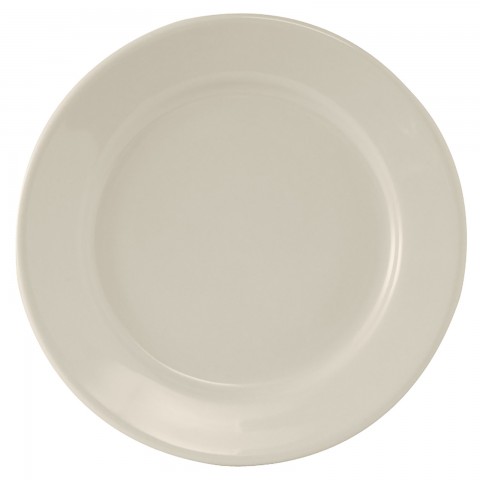 Plate, 11-1/8" dia., round, wide rim, rolled edge, microwave & dishwasher safe, oven proof, fully vitrified, lead-free, ceramic, Reno, American White/Eggshell