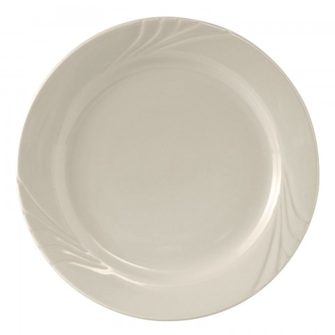 Plate, 10-1/4" dia., round, wide rim, embossed, microwave & dishwasher safe, oven proof, fully vitrified, lead-free, ceramic, TuxCare®©, Healthcare, Monterey, American White/Eggshell