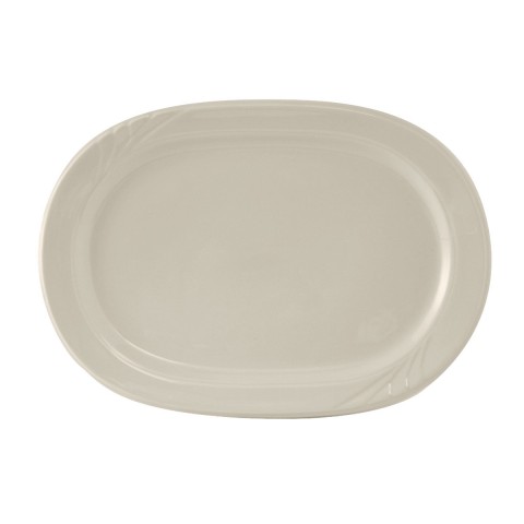 Racetrack Platter, 13-7/8" x 9-3/4", oblong, wide rim, embossed, microwave & dishwasher safe, oven proof, fully vitrified, lead-free, ceramic, TuxCare®©, Healthcare, Monterey, American White/Eggshell