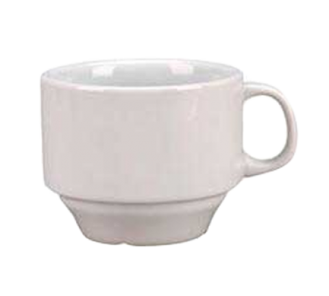 Cup, 8 oz., 3-3/8", with handle, stackable, rolled edge, porcelain, bright white, Universal, Argyle Collection (fits ARG-2)