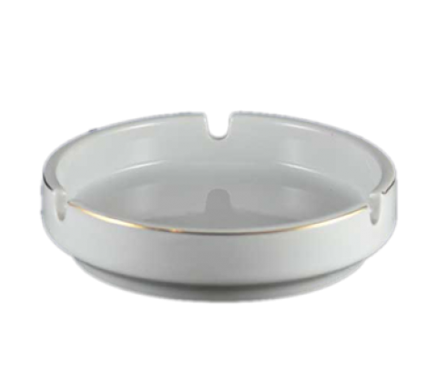 Ashtray, 4-1/2" dia., round, 3 snuff with gold band, rolled edge, bright white, Universal, Market Buffet Collection