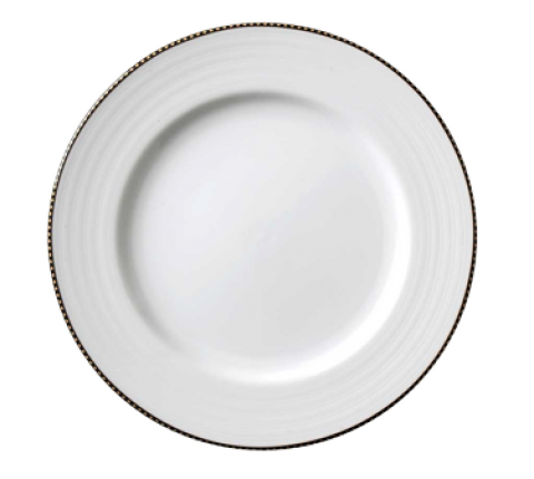 Plate, 10-1/2" dia., round, embossed, polished foot, porcelain, bright white, Premium, Euro Collection, Crystal Bay, Black Diamonds (made to order, call for special requirement)