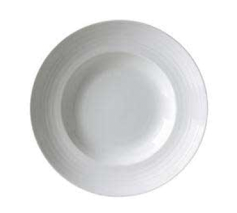 Pasta Bowl, 20 oz., 12" dia., round, deep, with rim, embossed, polished foot, porcelain, bright white, Premium, Euro Collection, Crystal Bay, Black Diamonds (made to order, call for special requirement)