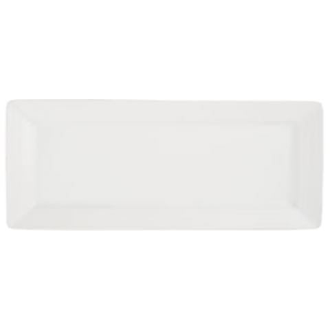 Plate, 14-1/2" x 7", rectangle, embossed, polished foot, porcelain, bright white, Premium, Euro Collection, Crystal Bay
