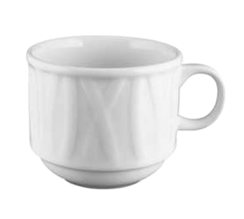 Cup, 8 oz., 3-1/8", with handle, stackable, embossed, polished foot, porcelain, bright white, Premium, Euro Collection, Grass Valley, Water Colors, blueberry (fits GV-2)