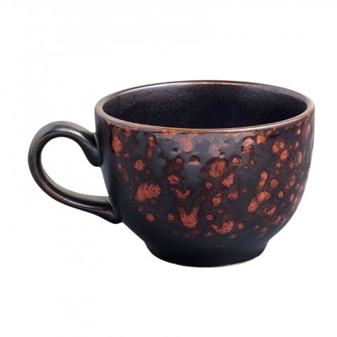 Cup, 8 oz., 3-1/2", with handle, hand painted, fully glazed foot, scratch resistant, aluminum oxide reinforced body, porcelain, matte black/terra cotta reactive glaze, Premium, London Moonstone Collection
