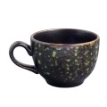Cup, 8 oz., 3-1/2", with handle, hand painted, fully glazed foot, scratch resistant, aluminum oxide reinforced body, porcelain, matte black/jade reactive glaze, Premium, London Moonstone Collection