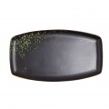 Platter, 13" x 7", oblique/rectangular, hand painted, fully glazed foot, scratch resistant, aluminum oxide reinforced body, porcelain, matte black/jade reactive glaze, Premium, London Moonstone Collection