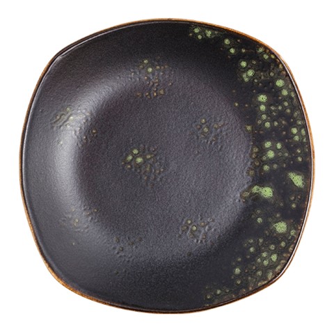 Plate, 8-1/2" x 8-1/2", square, hand painted, fully glazed foot, scratch resistant, aluminum oxide reinforced body, porcelain, matte black/jade reactive glaze, Premium, London Moonstone Collection