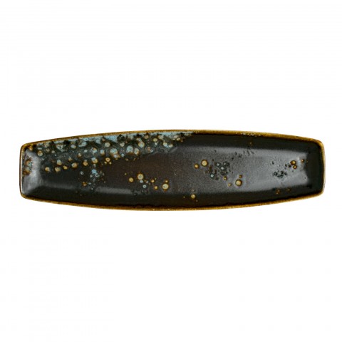 Platter, 13" x 3-1/2", oblique/rectangular, hand painted, fully glazed foot, scratch resistant, aluminum oxide reinforced body, porcelain, matte black/sky blue reactive glaze, Premium, London Moonstone Collection