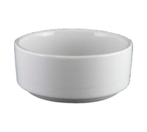 Bouillon, 8 oz., 4" dia., stackable, subtle embossment, rolled edge, porcelain, bright white, Universal, Radiance Collection (fits RA-2)