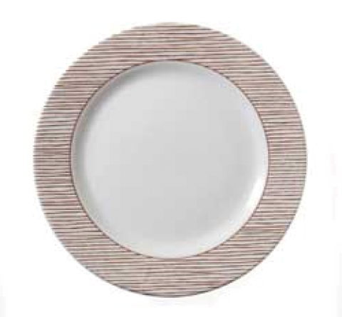 Plate, 9" dia., round, polished foot, magnesium reinforced body, super white, Premium, Rubicon Collection, Linear Terra Cotta (made to order, call for special requirement)