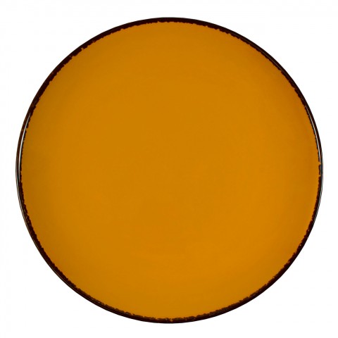 Plate, 12” x 1-3/4”, round, coupe, hand painted rim, porcelain, gloss finish, Pumpkin, Universal, Woodland Collection
