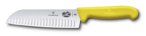 Santoku Knife, 7", 1-1/2" width at handle, granton edge, yellow Fibrox® Pro handle, stamped