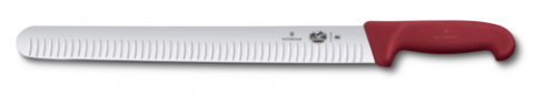 Slicer Knife, 14" wide blade, 1-1/2" width at handle, granton edge, red Fibrox® nylon handle, slip resistant, NSF