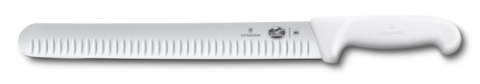 Slicer Knife, 12" wide blade, 1-1/4" width at handle, granton edge, white Fibrox® nylon handle, slip resistant, NSF