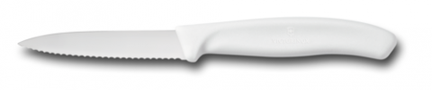Victorinox® Paring Knife, Swiss Classic, Spear Point - 3¼" Blade, Serrated Edge, white polypropylene handle, high carbon stainless steel blade, Blade Etiquette protection, NSF