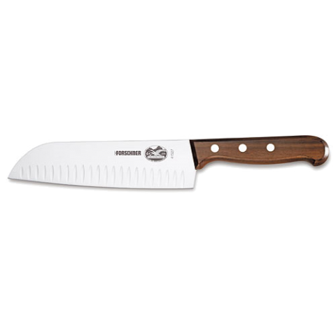 Santoku Knife, 7", granton edge, wood handle, clamshell/peggable package, stamped