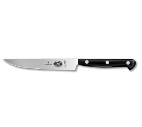 Victorinox® Steak Knife, 5" pointed tip, stamped blade, wavy edge, full tang, black POM handle